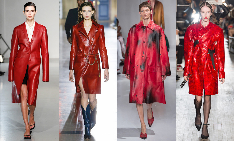 Якщо в минулому і в цьому сезоні ми продовжуємо горіти шкіряним плащем, як у героїв «Матриці», в то в наступному році він неодмінно засвітиться червоним світлом. Носіть з простою водолазкою, спідницею або брюками одного кольору, а ще краще – на голе тіло замість сукні.