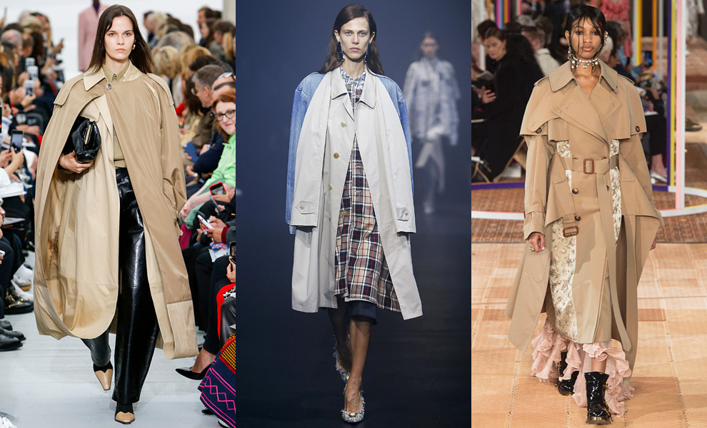Ще трохи про плащі. У моді – дивні екземпляри: плащі-намети, як у Céline, зшиті з двох і вивернутих навиворіт, схрещені з джинсовкою, як у Balenciaga, або з парчевою сукнею, як у Alexander McQueen.